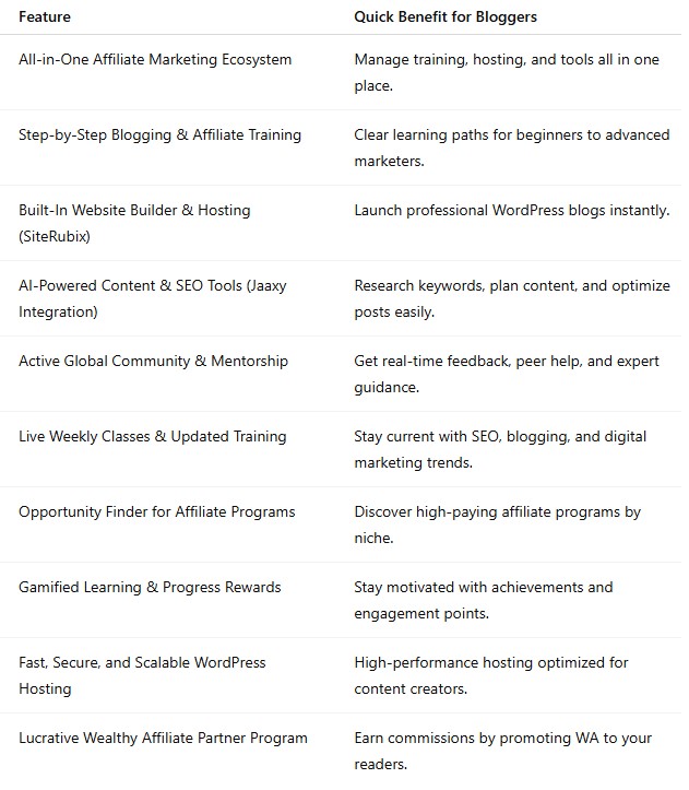 Wealthy Affiliate makes life easier for bloggers who appreciate a streamlined experience, accessible support, and ongoing updates.