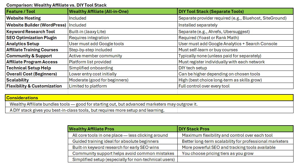 If you learn quickly on your own and crave maximum control, you can still build your own stack—mixing WordPress, third-party keyword tools, analytics, and more as you see fit. But if you prefer hands-on help and having essentials bundled together, Wealthy Affiliate is definitely worth checking out.